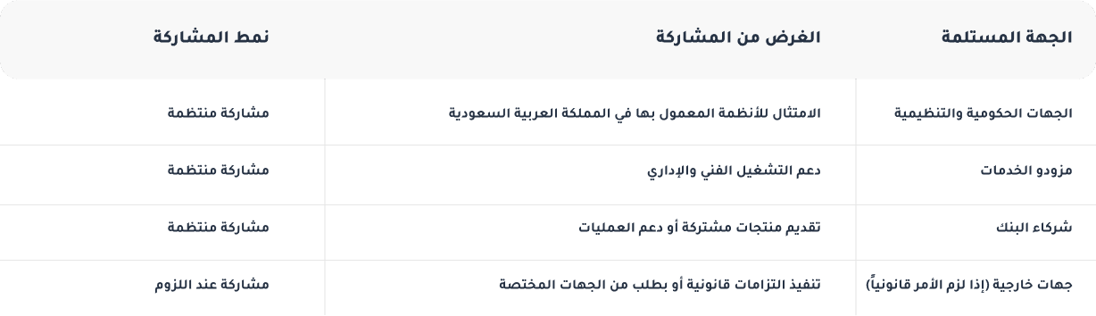 لنتمكن من إجراء المعالجة اللازمة لتحقيق الأغراض الموضحة في هذا الإشعار، قد نقوم بمشاركة بياناتك الشخصية مع أطراف داخل البنك أو خارجه، كالجهات الحكومية والتنظيمية، ومقدمي الخدمات، والشركاء، وقد يتضمن ذلك نقل بياناتك الشخصية إلى خارج المملكة، وفقاً للأُطُر النظامية وفي حدود الحالات المسموح بها نظاماً.