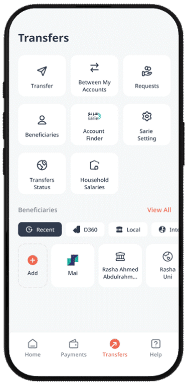 Pay domestic workers’ salaries easily and securely through D360 Bank, with free international transfers for amounts of SAR 100 or more.